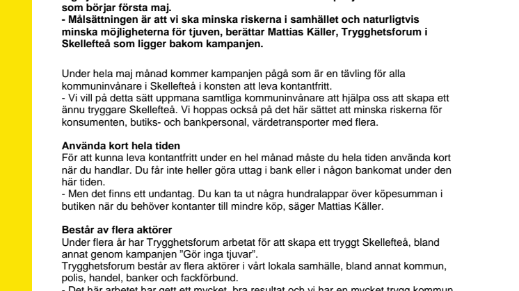 Under hela maj månad kommer kampanjen pågå som är en tävling för alla kommuninvånare i Skellefteå i konsten att leva kontantfritt.