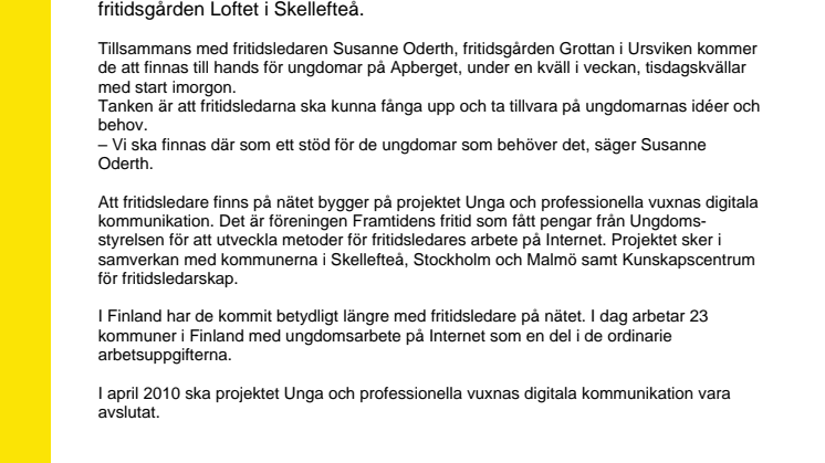 • Nytt projekt - Fritidsledare på nätet i Skellefteå
